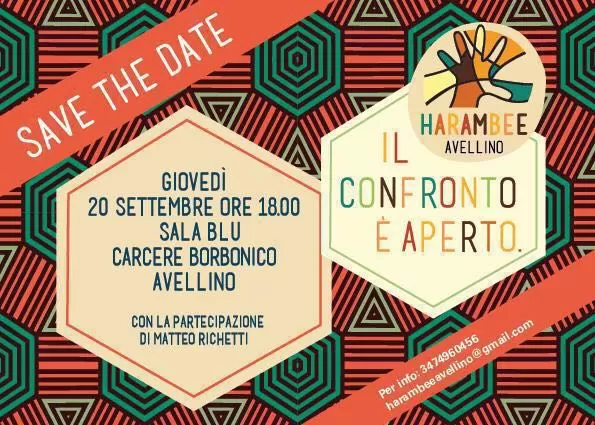 L’incontro, promosso da Harambee Avellino, si terrà giovedì 20 settembre alle 18 nella sala blu del Carcere Borbonico di Avellino.